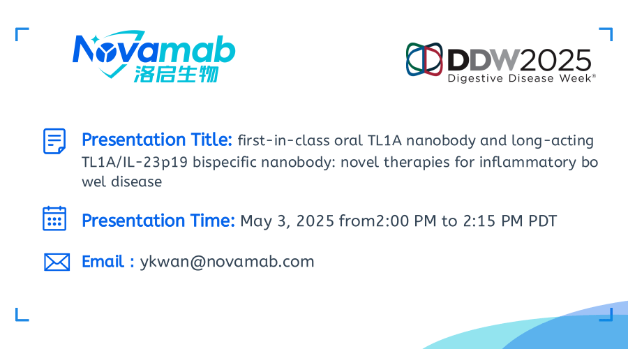 中国上海,2025年4月28日——上海z6com人生就是搏生物医药技术有限公司,一家致力于纳米抗体创新药研发的生物技术公司宣布:z6com人生就是搏生物将于当地时间5月3-6日参加在加利福尼亚州圣地亚哥举行的2025年美国消化疾病周(Digestive Disease Week,DDW)。届时z6com人生就是搏生物将展示在炎症性肠病(IBD)治疗领域的突破性研究成果——口服TL1A纳米抗体及长效TL1A双特异性抗体的开发进展。该创新疗法顺利获得独特的TL1A纳米抗体技术,实现了对IBD病理机制的精准靶向。